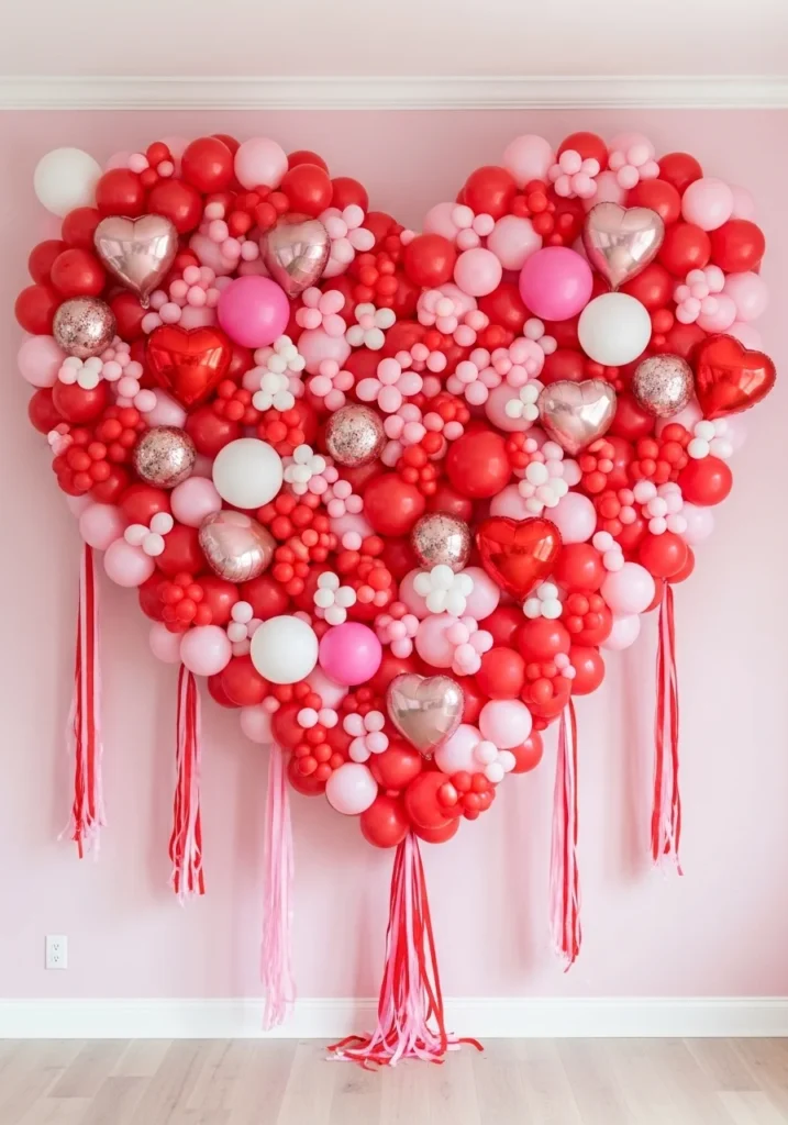 A balloon heart wall installation instantly elevates any Valentine’s celebration with vibrant, playful charm. Using balloons in varying shades of red, pink, and white, you can create a heart-shaped focal point that doubles as a festive backdrop for photos or parties. Its cheerful appearance brings energy and excitement to any space.