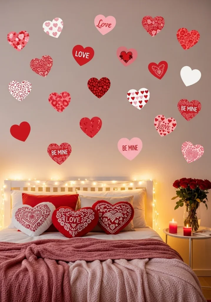 03. Heart-shaped wall decals for quick Valentine’s room transformation, minimal effort styling