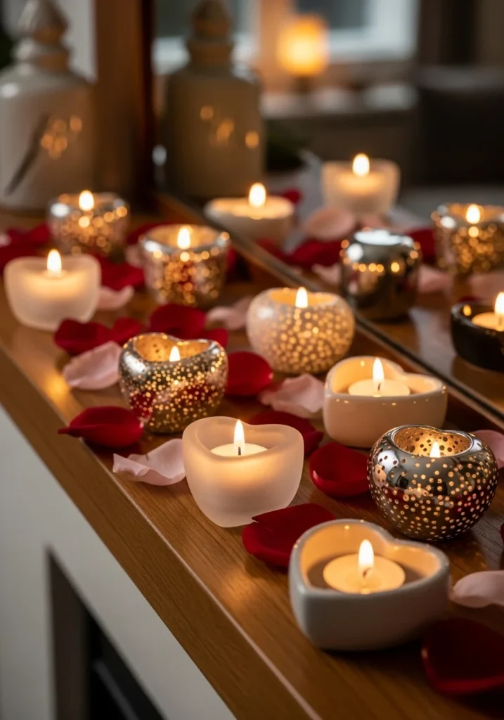 Mini heart votives and tealight holders are perfect for adding subtle Valentine ambiance to any room. Placed on tables, mantels, or shelves, they provide gentle illumination while reinforcing a festive, romantic theme. Their compact size allows for versatile placement without dominating the décor.