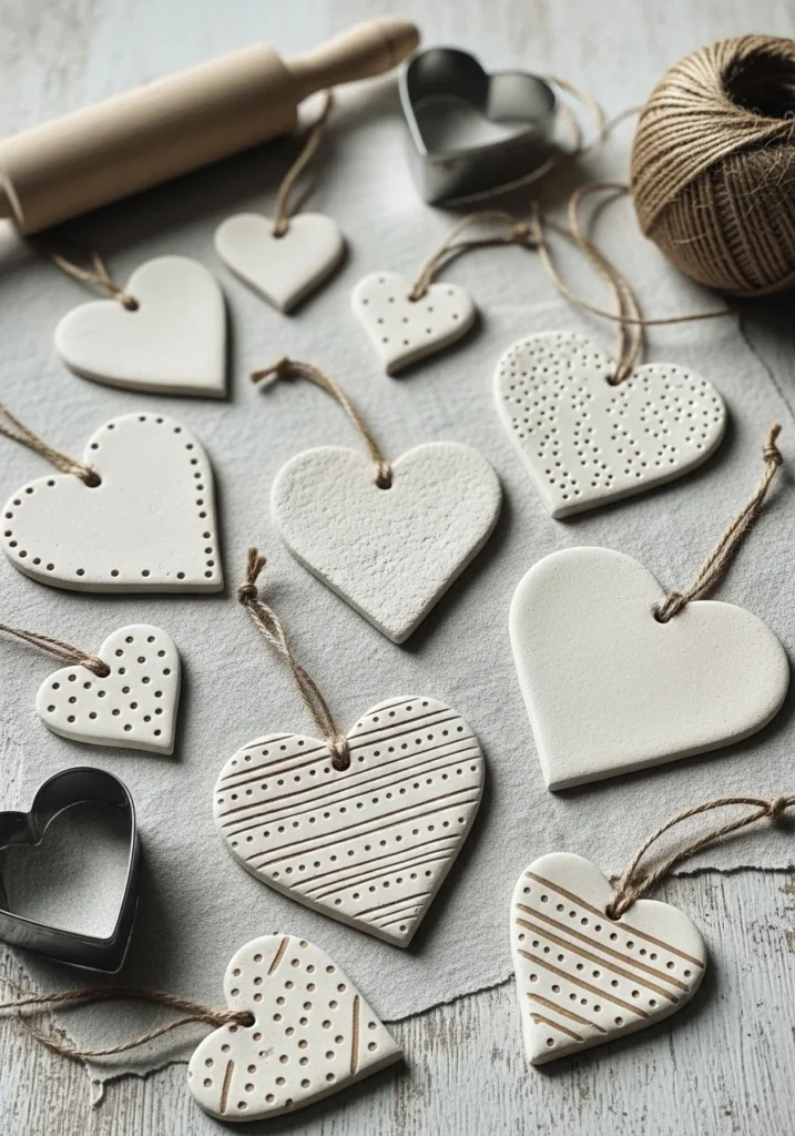 07. Simple clay or salt-dough hearts for handmade seasonal decorations, craft-friendly