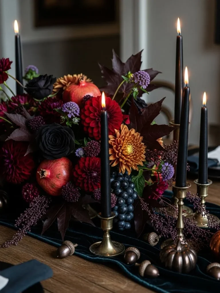 20. Dark and moody Thanksgiving centerpiece ideas with deep autumn tones