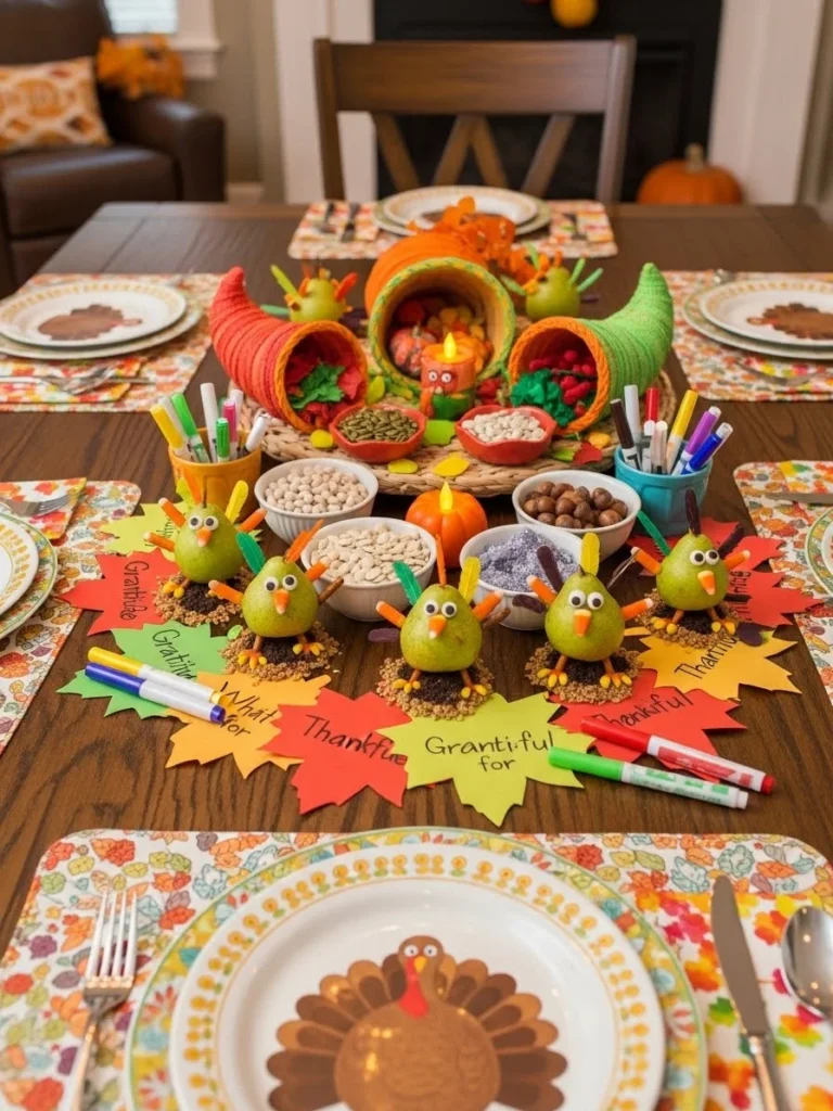 This approach creates a warm, joyful atmosphere perfect for multi-generational gatherings. It ensures the table remains both functional and visually charming while keeping young guests engaged. The result is a Thanksgiving centerpiece that blends decor with family bonding, making the celebration memorable for everyone.