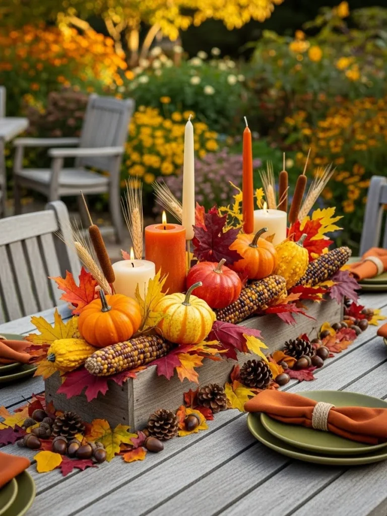 18. Outdoor Thanksgiving centerpiece ideas designed for patio or garden tables