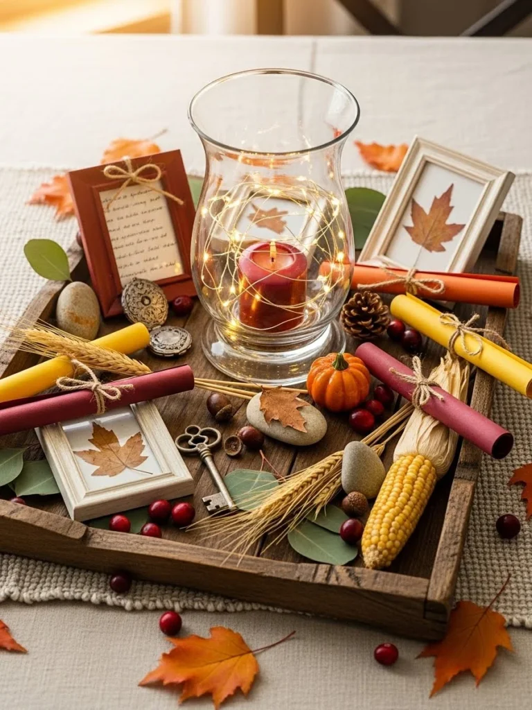 21. Thanksgiving centerpiece ideas centered around gratitude notes and keepsakes