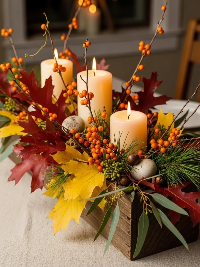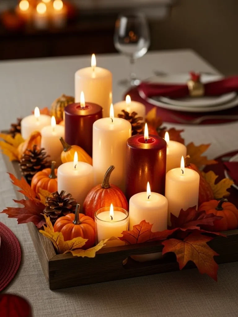 07. Thanksgiving centerpiece ideas featuring candle clusters for a warm ambient glow