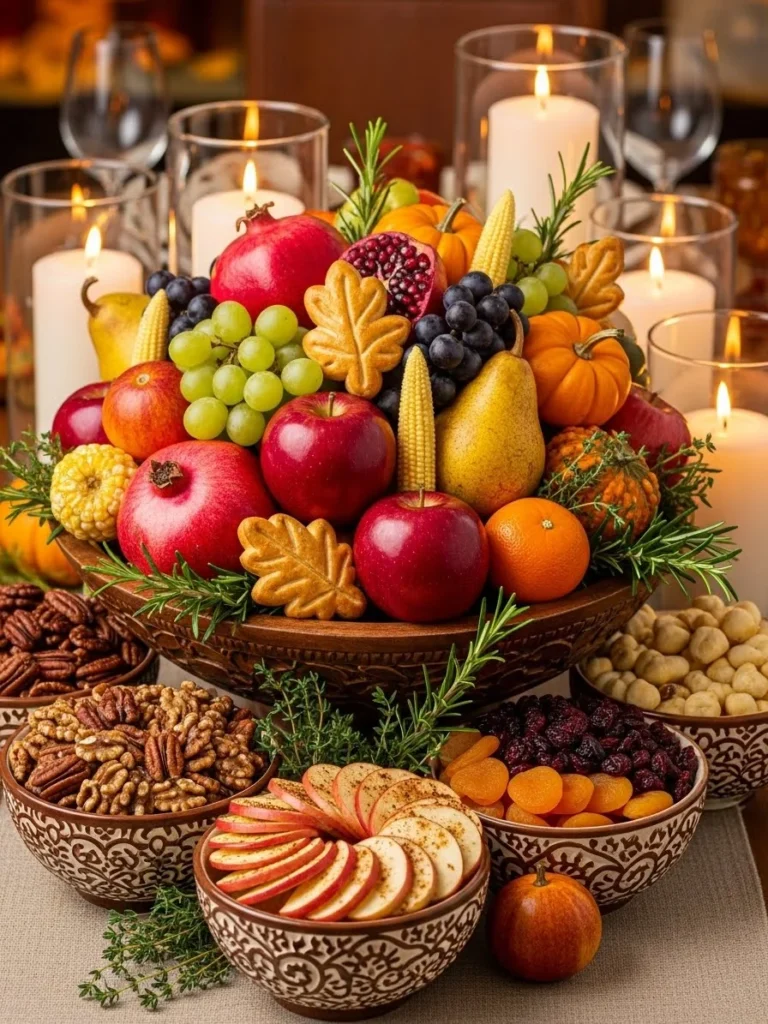14. Thanksgiving centerpiece ideas featuring fruit-filled bowls and edible displays