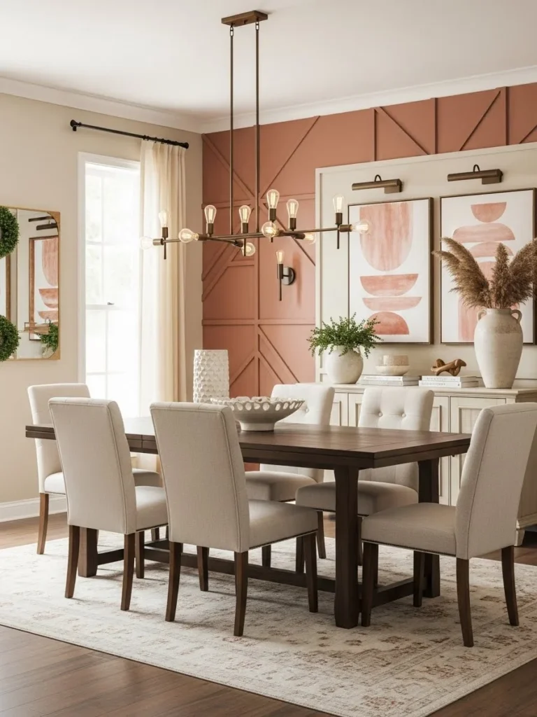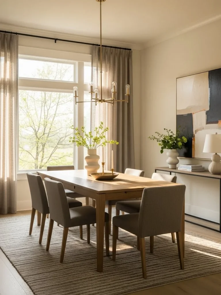 This approach allows for versatility, as accent colors and decorative pieces can be updated seasonally or according to trends without requiring a complete redesign. A transitional color palette ensures the dining room feels cohesive, elegant, and timeless, accommodating both formal gatherings and casual family meals.