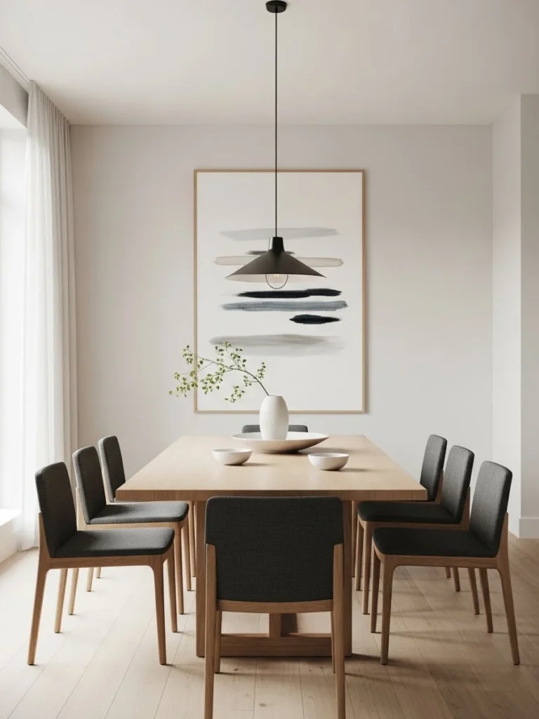 Ideal for homeowners who want to merge classic elegance with modern creativity, statement artwork and lighting elevate the room’s aesthetic and functionality. This approach ensures the dining space feels curated, dynamic, and inviting, making it suitable for both entertaining and everyday meals.
