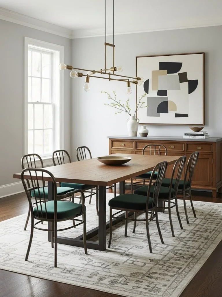 This approach works particularly well in modern traditional dining rooms seeking to bridge eras. It allows homeowners to maintain timeless elegance while introducing contemporary flair, making the space versatile for both formal dinners and casual gatherings. By thoughtfully combining lighting styles, the dining room becomes dynamic, inviting, and visually balanced.