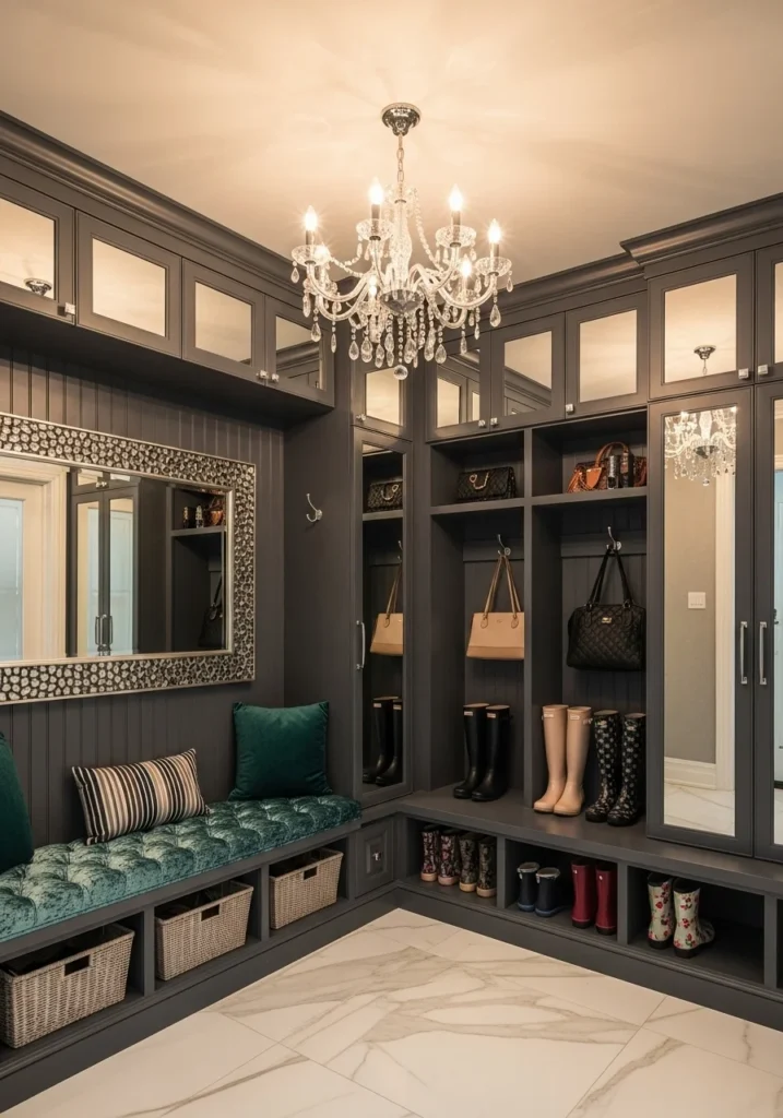 A glam mud room is all about drama, light, and luxury. It transforms a transitional space into a dazzling focal point of your home’s design narrative.