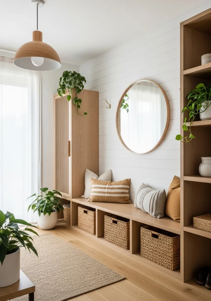 Japandi-Style Mud Room with Soft Textures and Natural Materials