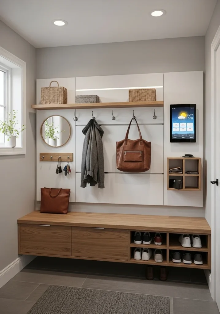 A smart mud room reimagines convenience through technology and design. It welcomes you with seamless functionality the moment you step inside.