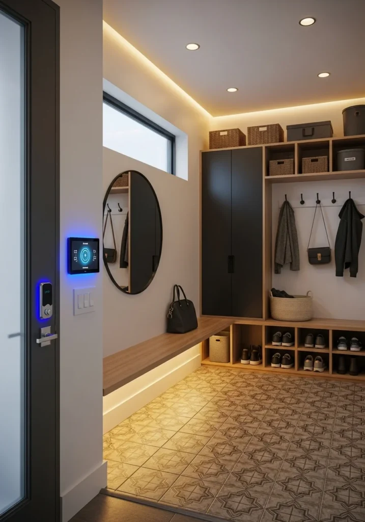 Smart Mud Room with Motion-Sensor Lighting and Keyless Entry