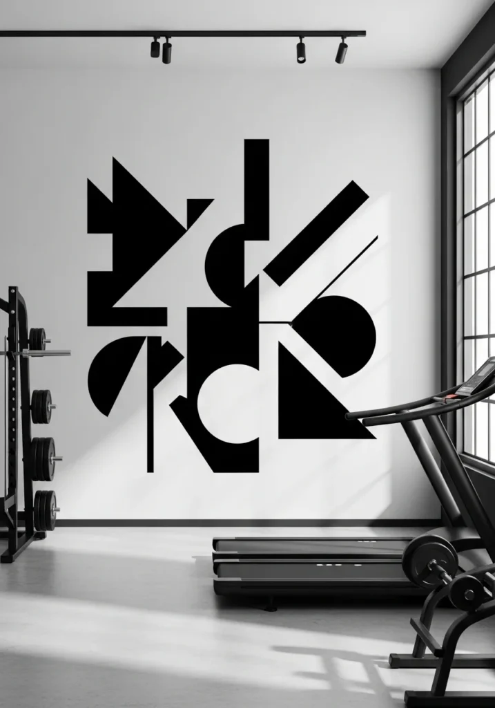This minimalist approach is ideal for urban apartments, home gyms, or boutique fitness studios seeking understated style and functional design. By combining geometric visuals with a black-and-white palette, the wall decor fosters motivation, clarity, and a sense of order, creating a gym environment that is both visually refined and energetically inspiring.