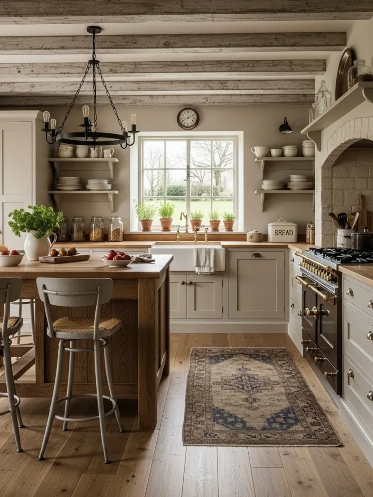 11. Farmhouse-style warm neutral kitchens with rustic charm