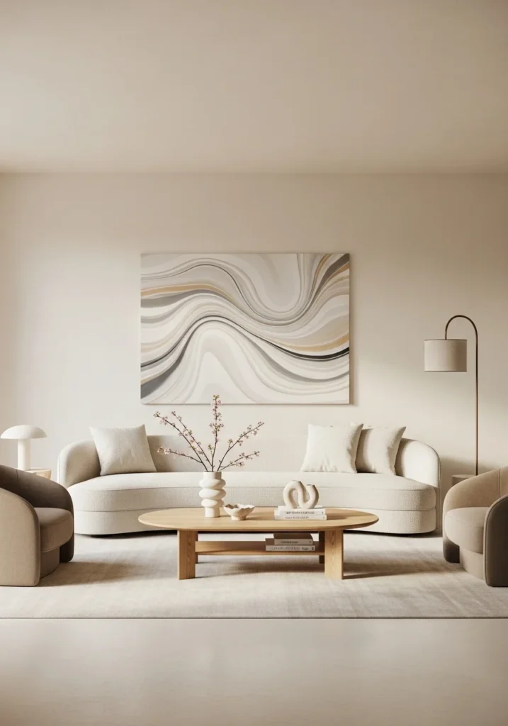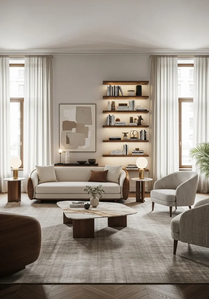 22. Minimalist Modern Classic Living Room with Soft Curves