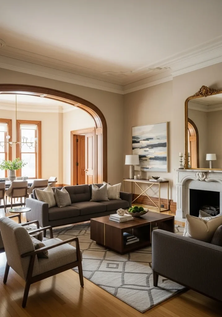 06. Elegant Modern Classic Living Room with Arched Doorways