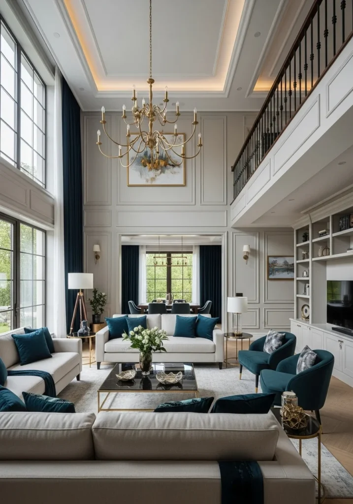 19. Grand Modern Classic Living Room with Double-Height Ceiling