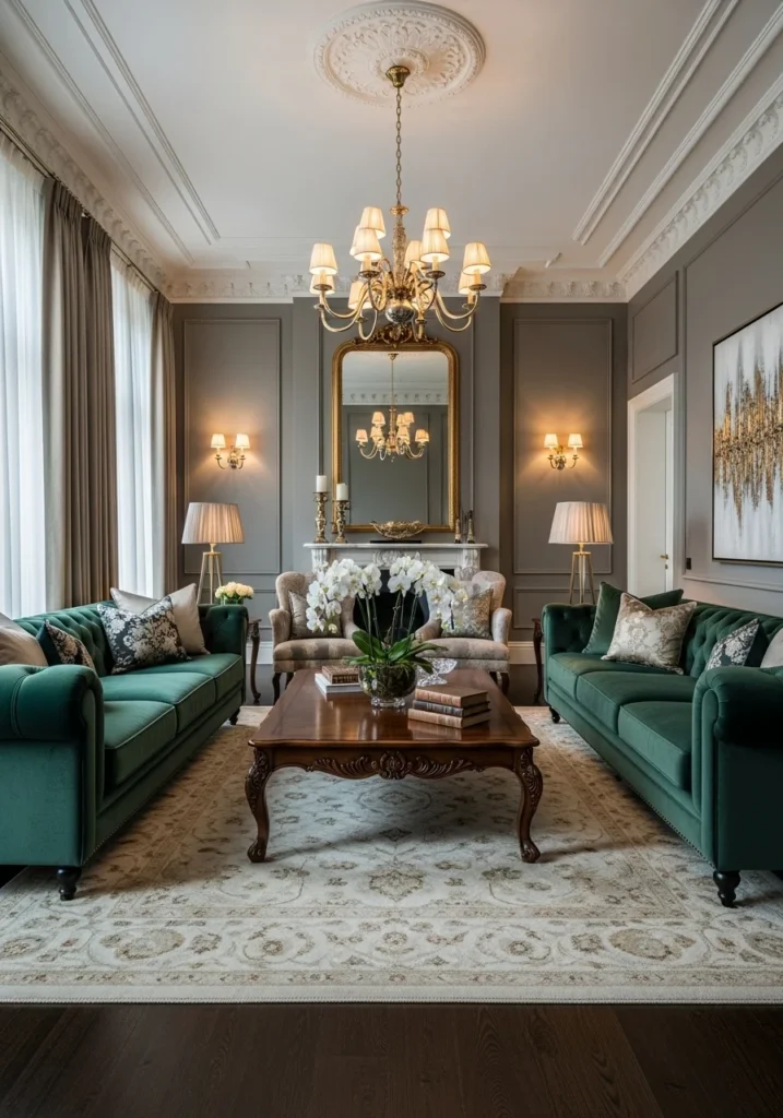 02. Luxurious Modern Classic Living Room with Velvet Sofas