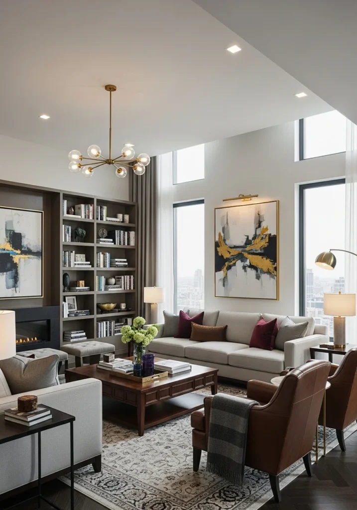 Ideal for upscale urban residences, this living room represents contemporary luxury at its finest. It embodies refined metropolitan living, offering a polished and aspirational environment that reflects prestige, comfort, and timeless elegance.