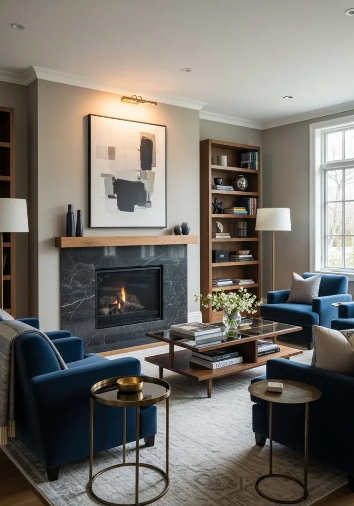 09. Modern Classic Living Room with Fireplace Centerpiece