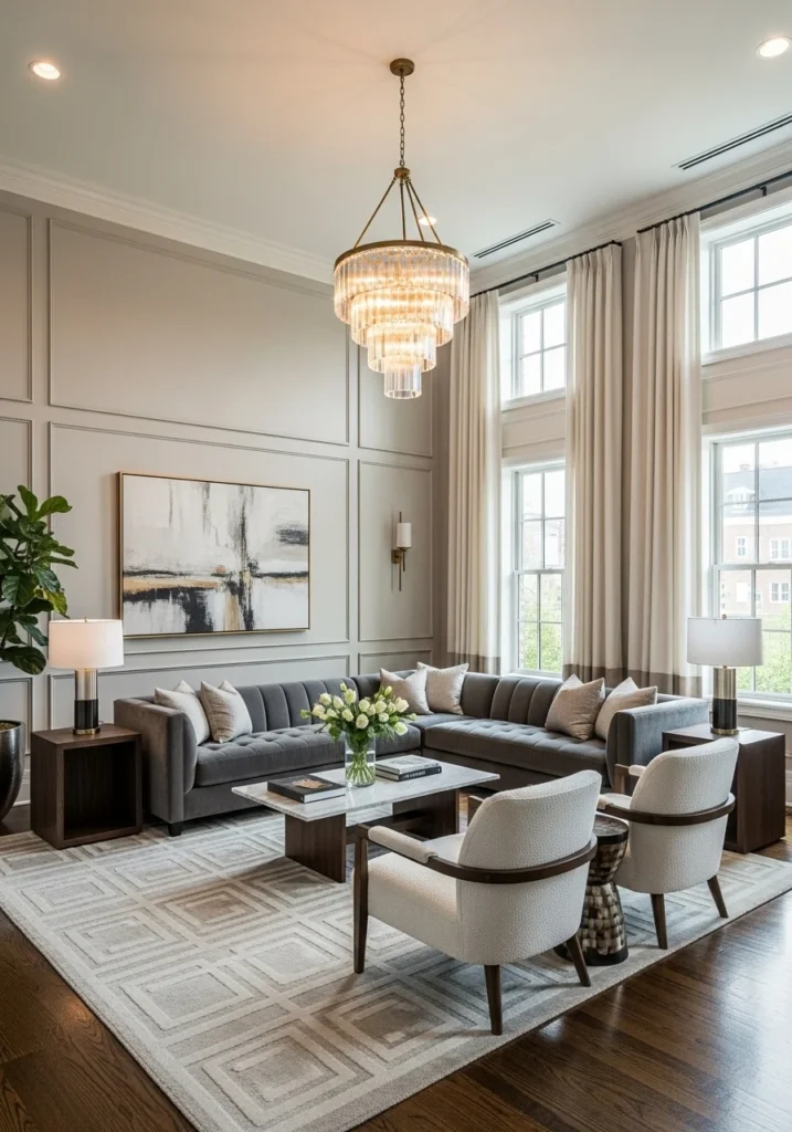 14. Sophisticated Modern Classic Living Room with Floor-to-Ceiling Drapes