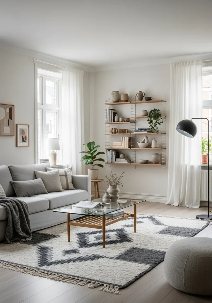 This Scandinavian-inspired modern classic living room merges soft neutral tones with elegant simplicity to create a calm and refined interior. Natural light, clean lines, and premium materials emphasize warmth, openness, and functional comfort, resulting in a serene and modern classic aesthetic.