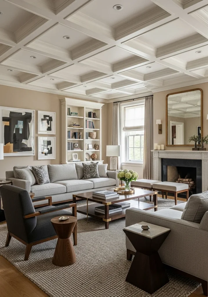 03. Timeless Modern Classic Living Room with Coffered Ceiling