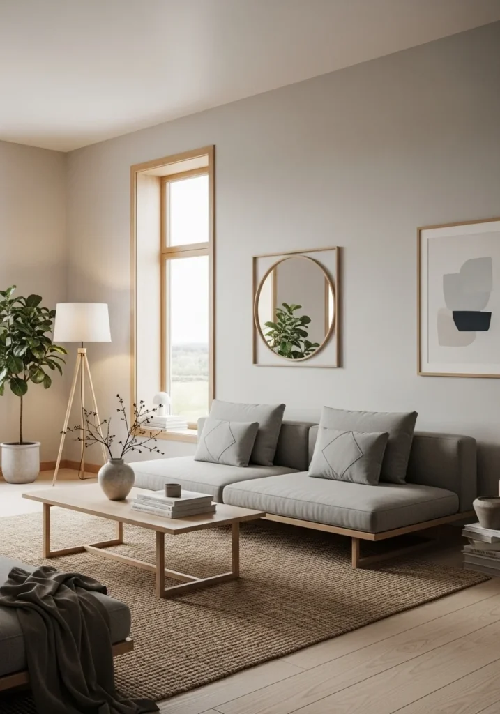 Contemporary Scandinavian-inspired living space with muted tones and clean lines