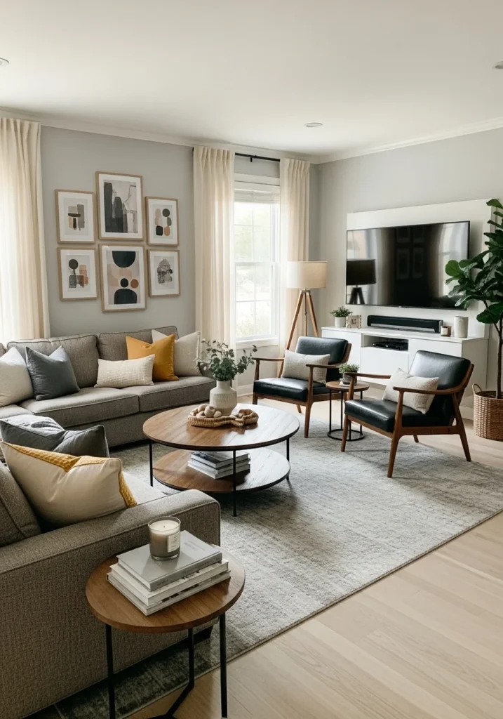 Contemporary family living room with functional layout and cozy atmosphere