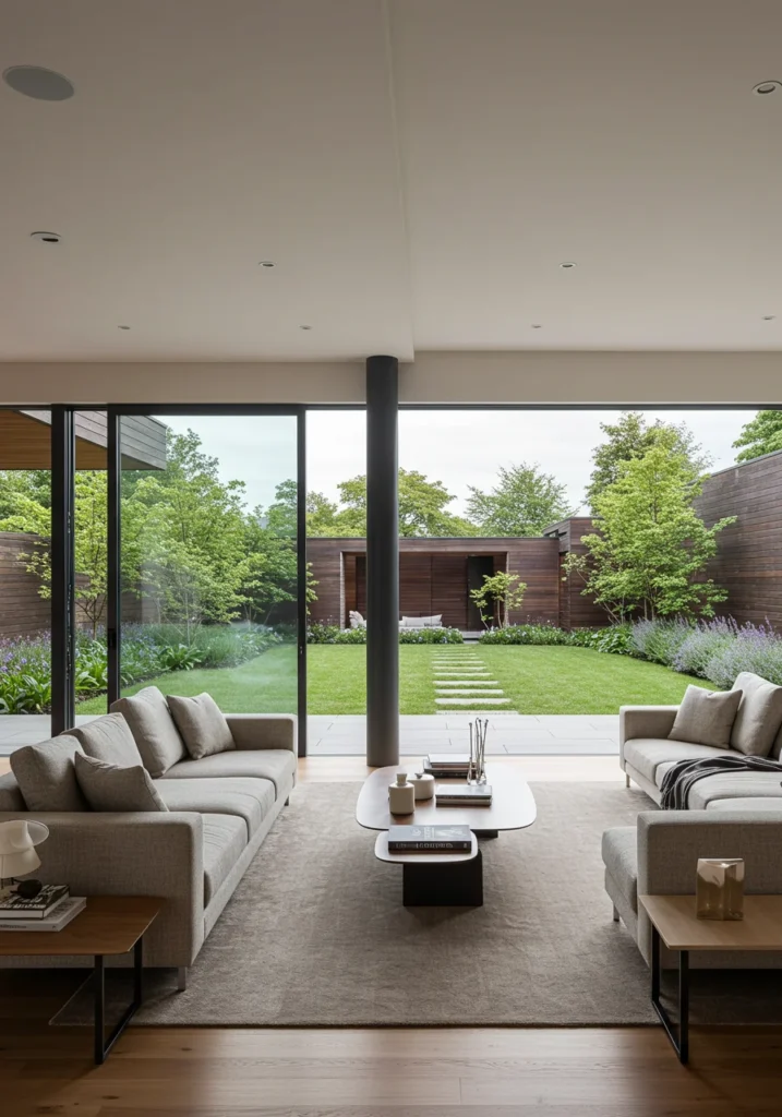 Open-plan lounge with floor-to-ceiling windows and indoor-outdoor flow