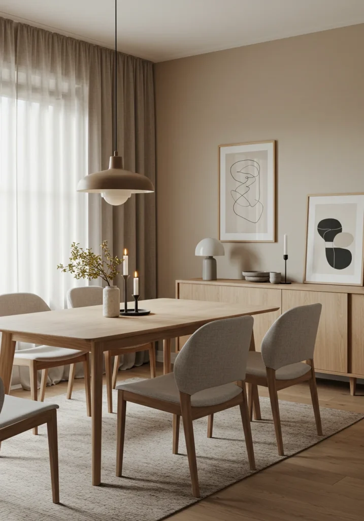 Japandi-style room with natural wood, neutral palette, and simple lines