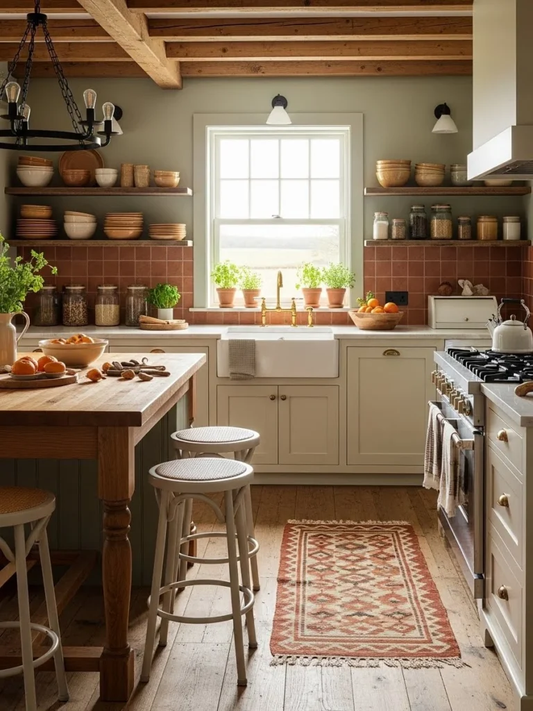 35. Farmhouse kitchen featuring warm earth-toned color schemes