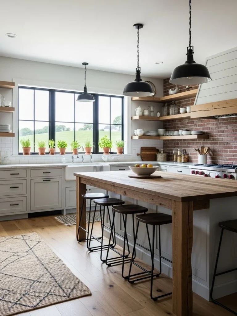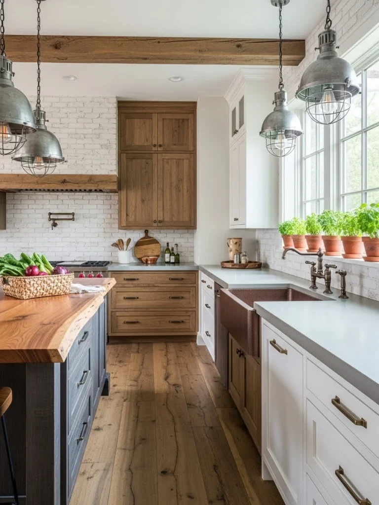 13. Rustic-modern farmhouse kitchen with mixed materials