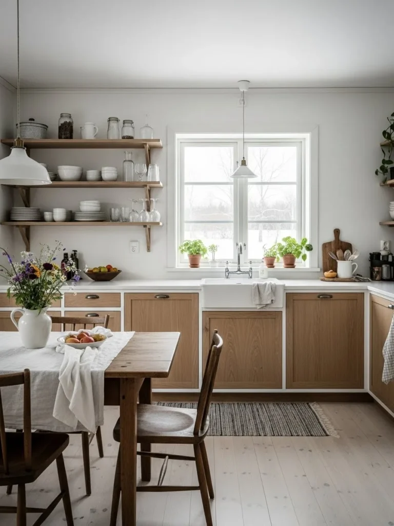 This hybrid style appeals to homeowners seeking simplicity without sacrificing warmth. The blend of Scandinavian clarity and farmhouse charm results in a timeless, inviting kitchen that prioritizes balance, light, and natural beauty.