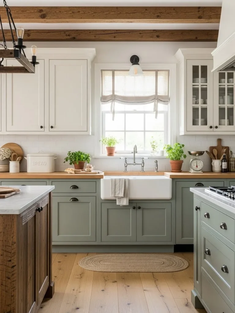 25. Two-tone farmhouse kitchen cabinets with rustic flair