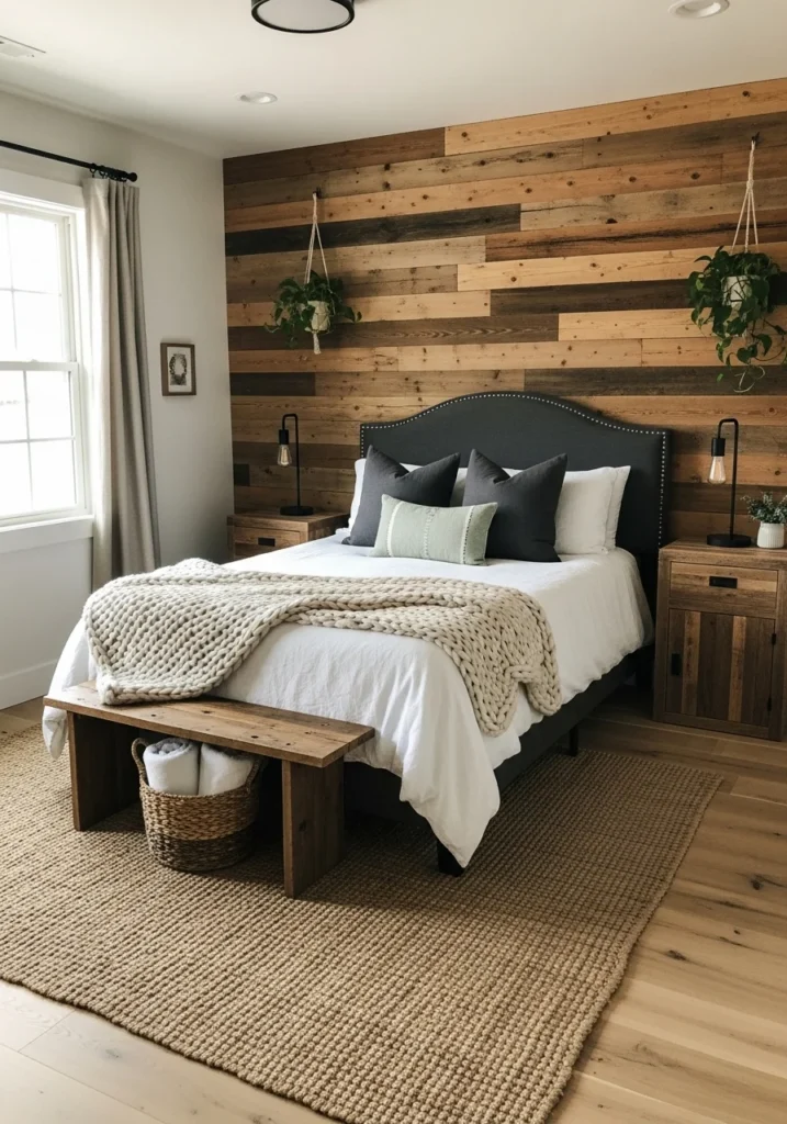 Modern rustic guest bedroom with reclaimed wood elements