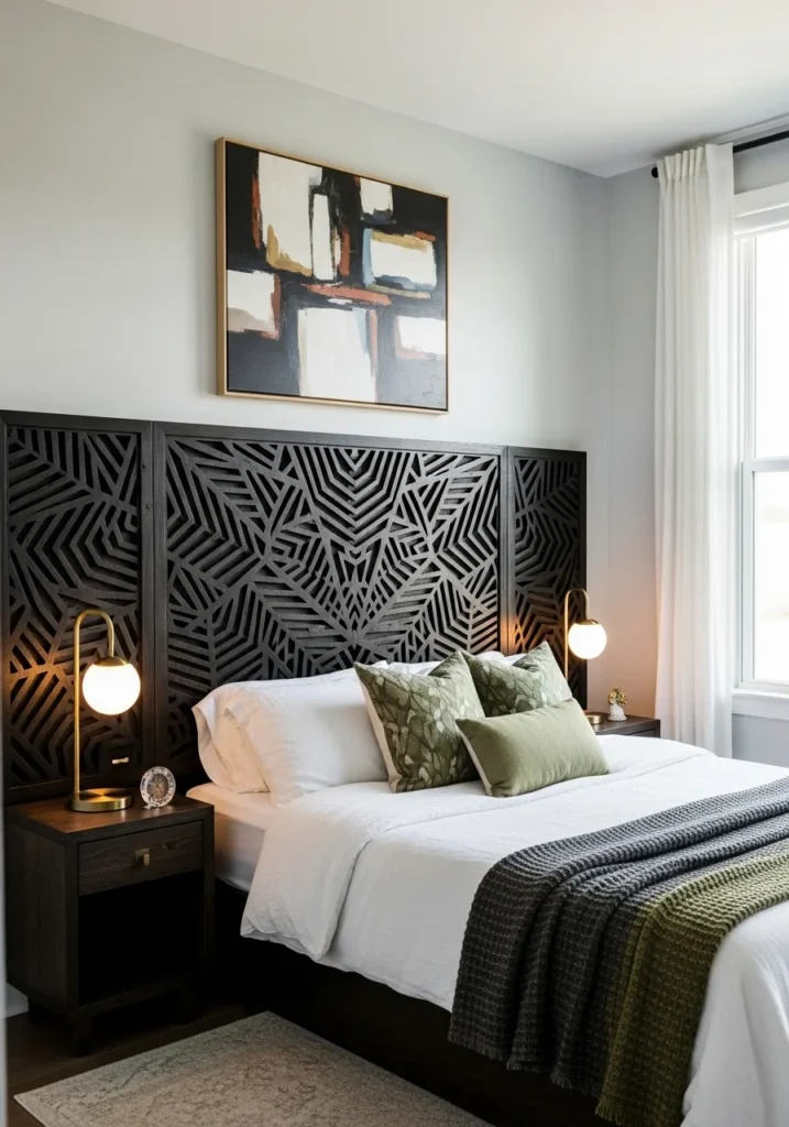 Complementing the headboard with coordinated furniture and décor ensures balance and cohesion. Simple nightstands, clean-lined lamps, and neutral bedding allow the headboard to shine while creating a polished, curated look. Layered textures and subtle accents enhance the room’s overall depth and sophistication.