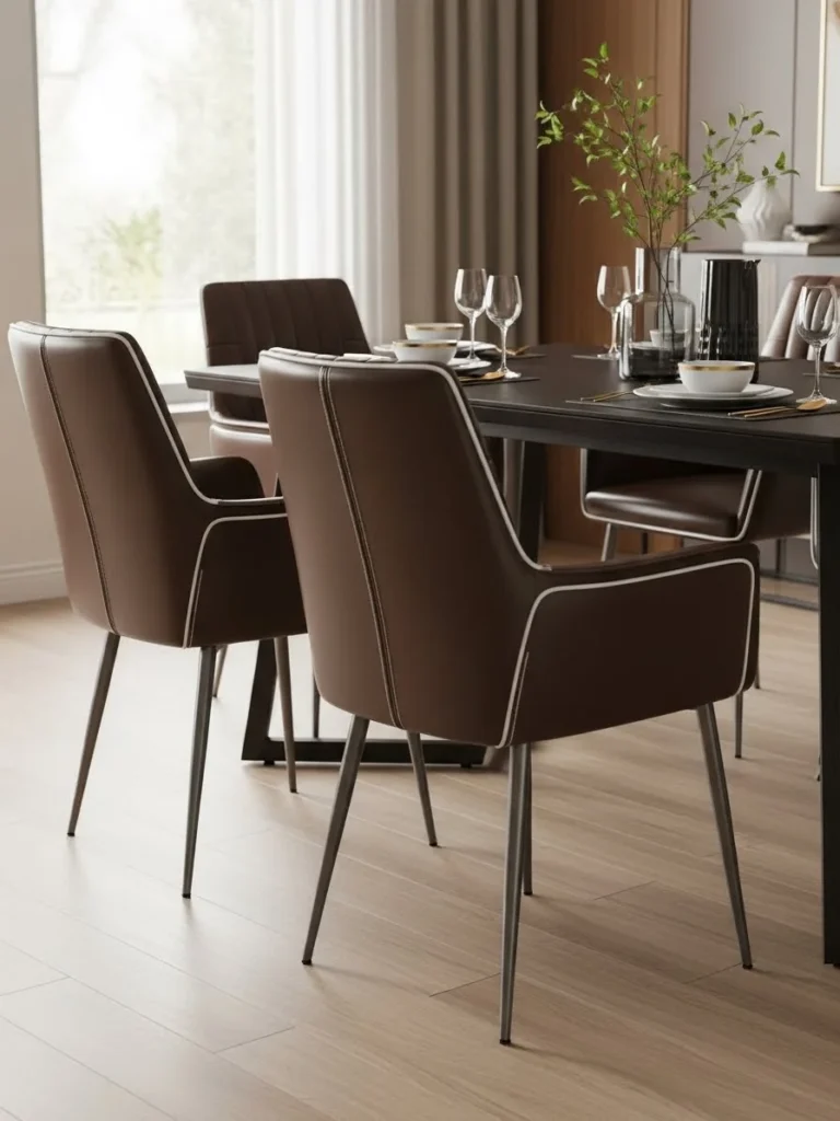 These chairs are perfect for homeowners seeking modern sophistication and comfort in one package. The combination of luxurious leather and precise stitching communicates craftsmanship and style. They effortlessly transform a dining space into a polished, contemporary environment while ensuring every seating experience feels refined and comfortable.