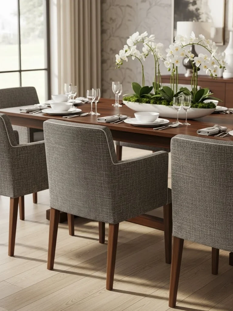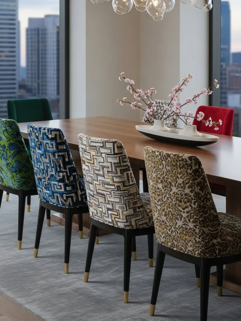 Perfect for eclectic, contemporary, or transitional interiors, patterned fabric dining chairs balance fun and sophistication. They offer a way to express individual style without compromising comfort or elegance. By incorporating bold textures and designs, these chairs transform ordinary dining rooms into visually engaging, personalized spaces perfect for entertaining and everyday use.