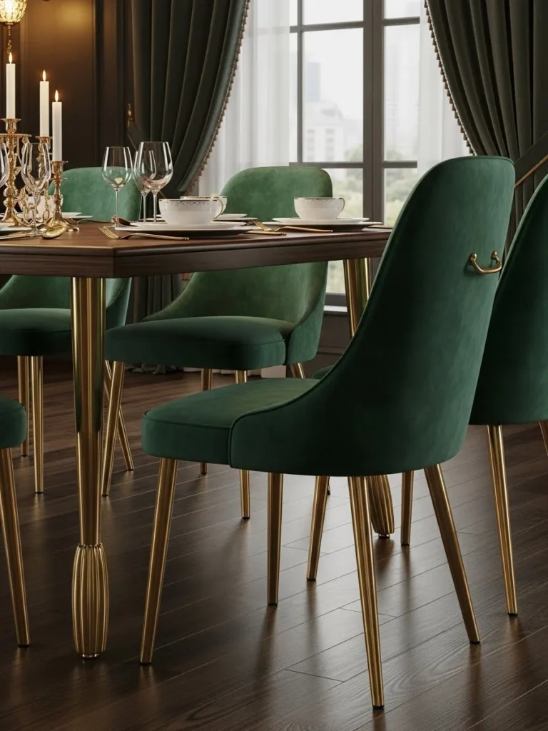 Perfect for contemporary, eclectic, or modern interiors, jewel-toned dining chairs balance elegance with expressive style. They add energy, depth, and sophistication, transforming ordinary dining rooms into dynamic spaces designed for entertaining and memorable gatherings.