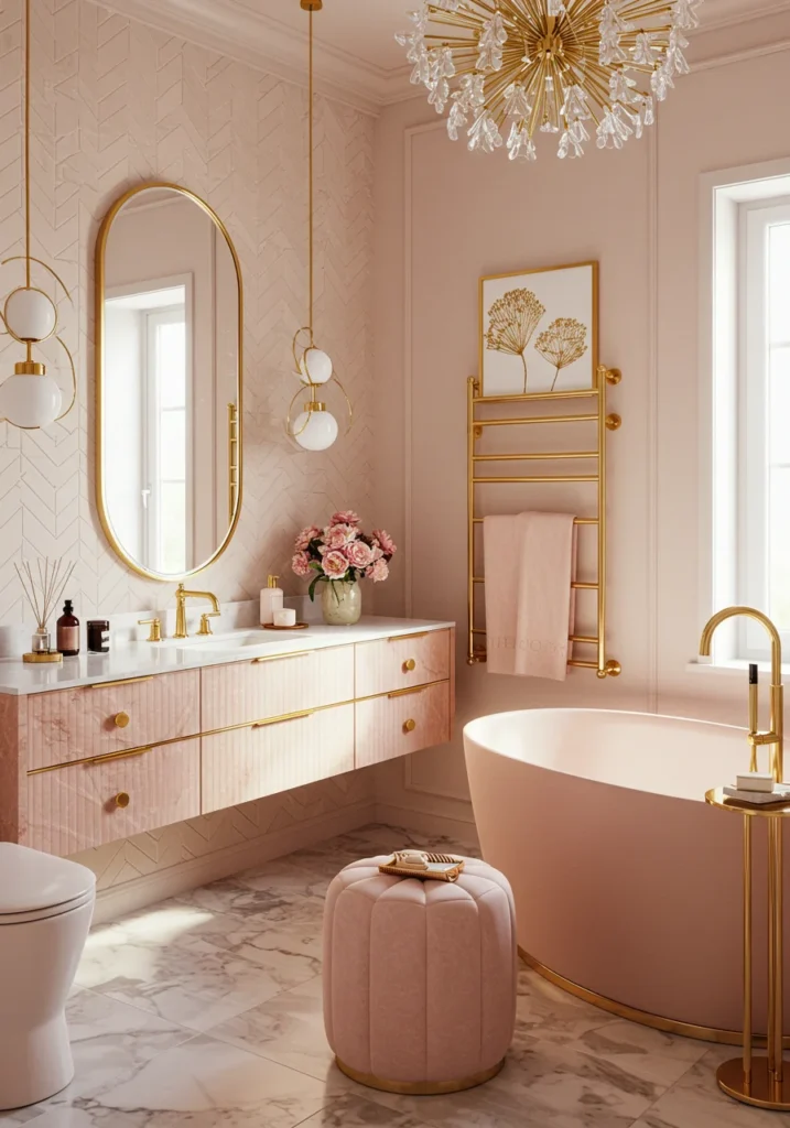 Fancy bathroom in blush pink and gold for a soft feminine touch