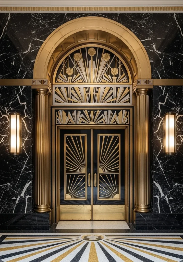 Art Deco-Inspired Entrance with Metallic Accents and Bold Symmetry