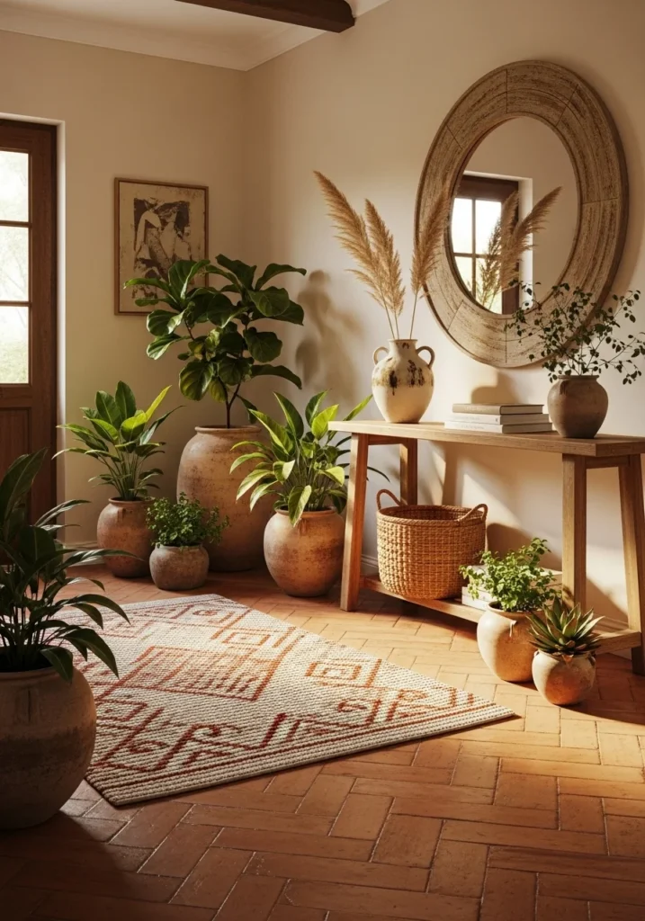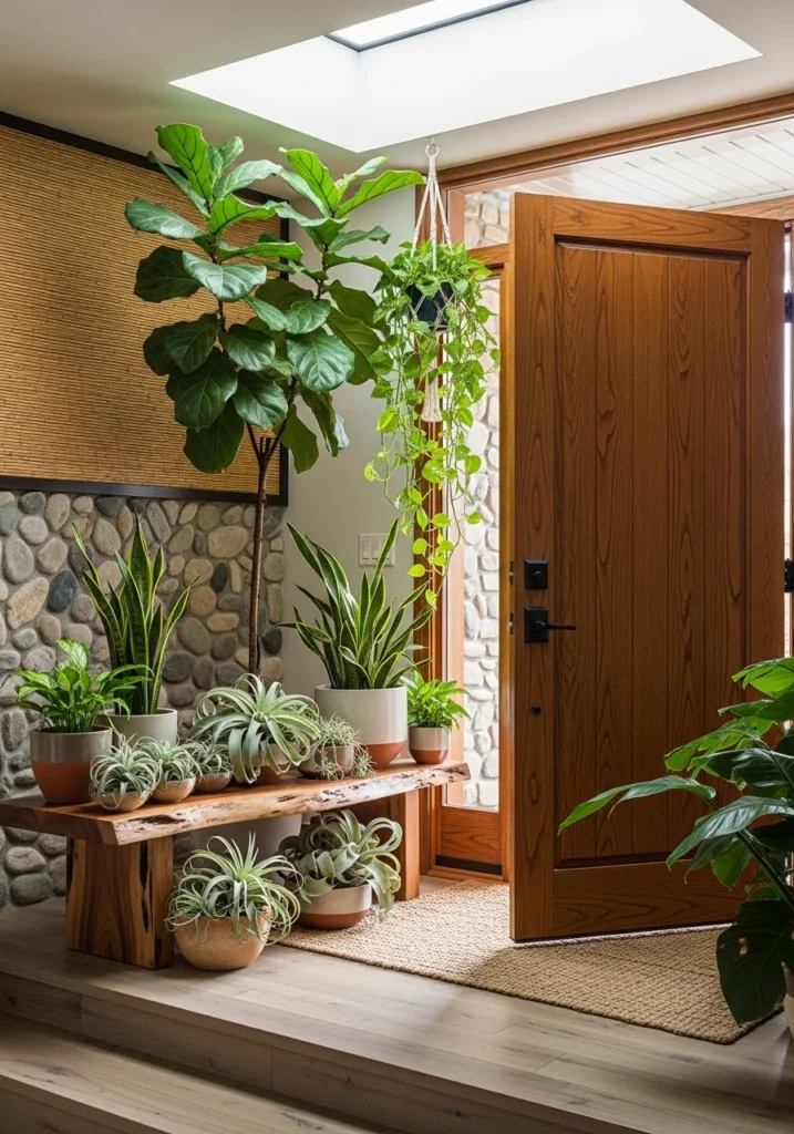 Biophilic Entryway Design with Indoor Plants and Natural Textures