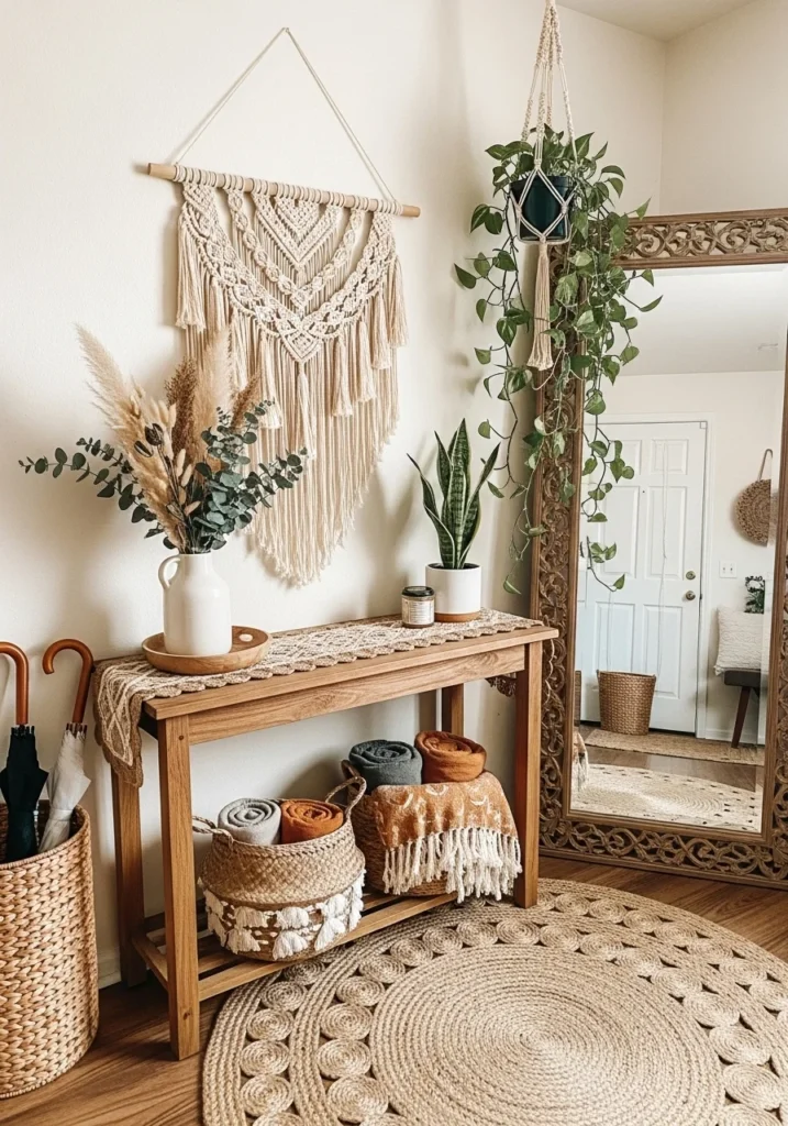 Earthy Boho Entryway with Natural Fibers and Greenery