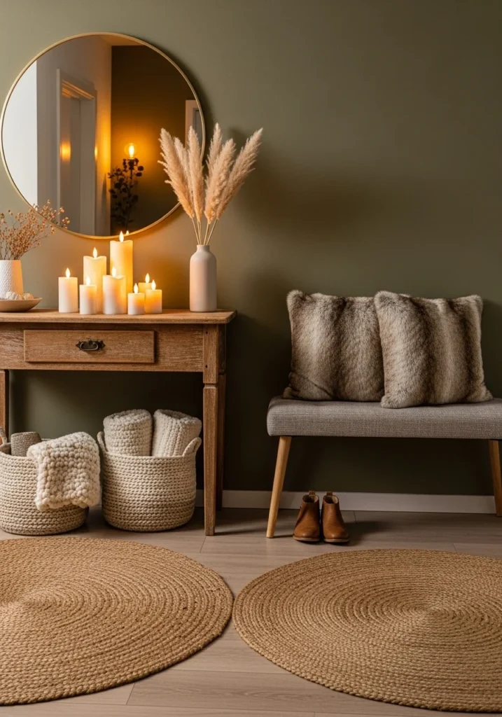 Hygge-Inspired Entryway with Candles, Soft Rugs, and Cozy Textures