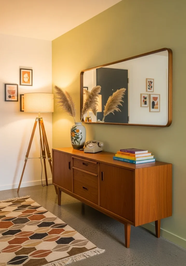 Mid-Century Modern Entryway with Vintage Décor and Clean Lines