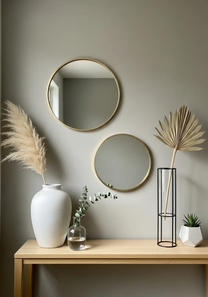 Minimal Entryway Console Table Styling with Vases and Mirrors