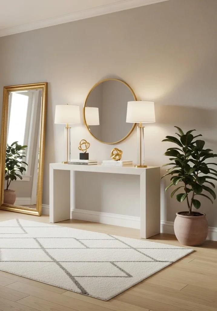 Minimal Glam Entryway with Gold Accents and Neutral Palette