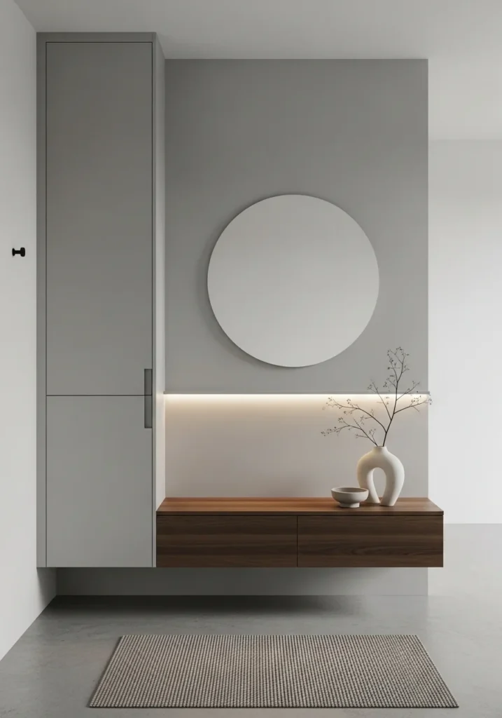 Minimalist Entryway Design with Hidden Storage and Sleek Lighting